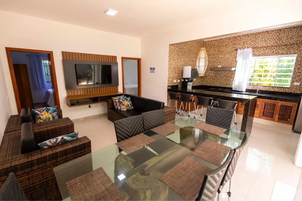 🏘️ 4 Apartamentos Privativos: Cada apartamento possui 2 suítes, sendo cada suíte equipada com 1 cama de casal e 1 cama de solteiro, ideal para casais, amigos ou pequenos núcleos familiares.